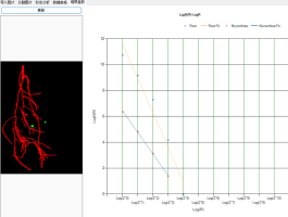 v 軟件能進行根系的拓撲分析,自動確定根的連接數、關系角等,還能單獨地自動分析主根或任意一支側根的長度和分叉數等,可單獨顯示標記根系的任意直徑段相應各參數。